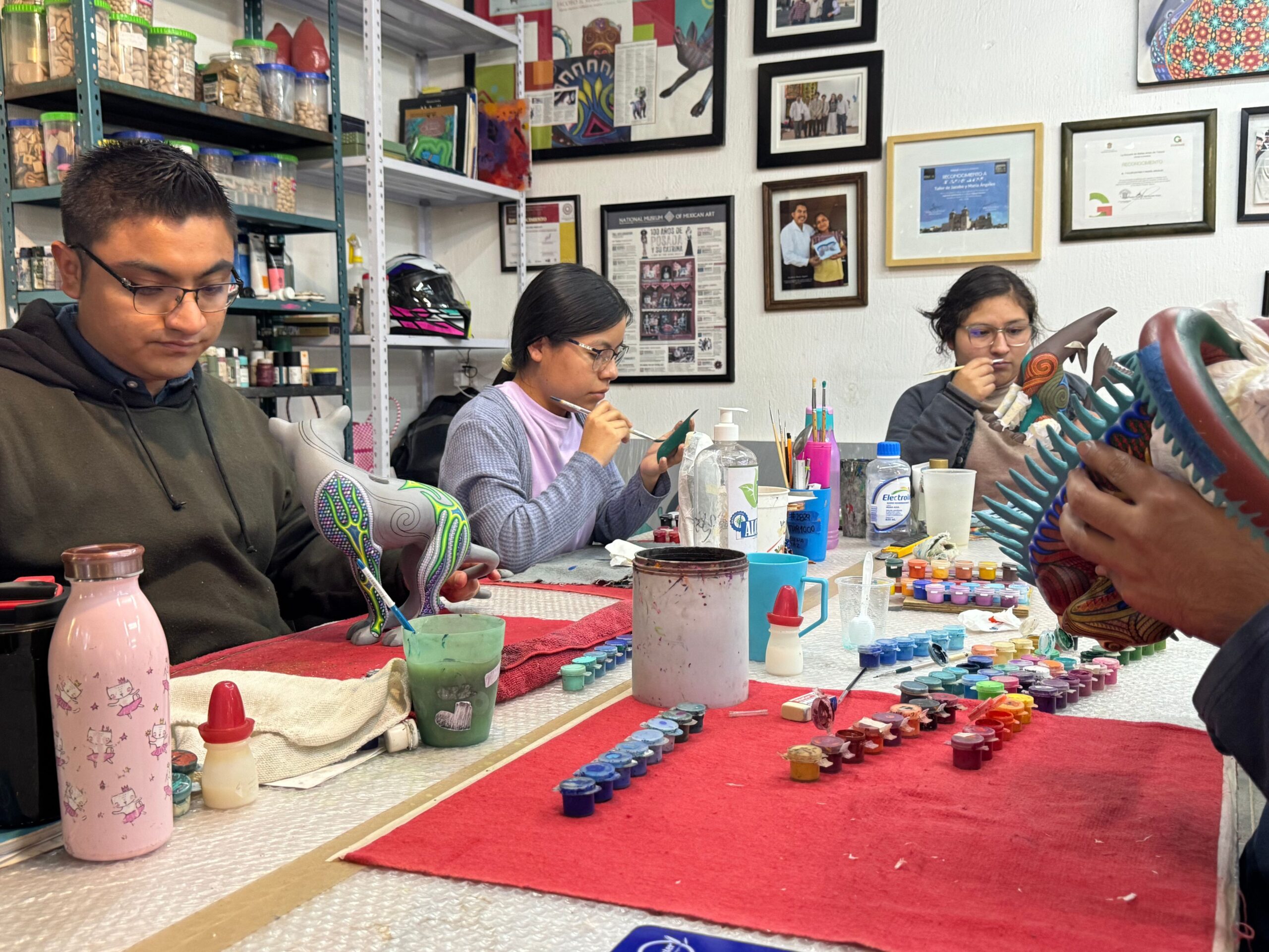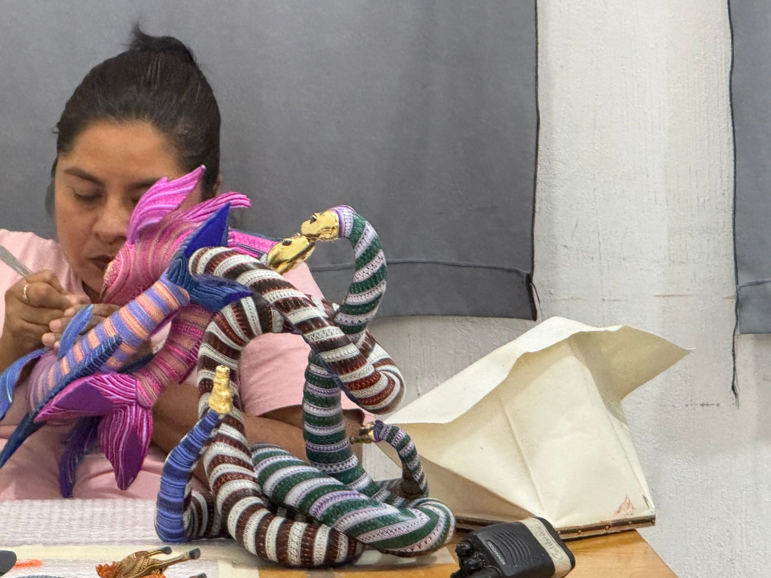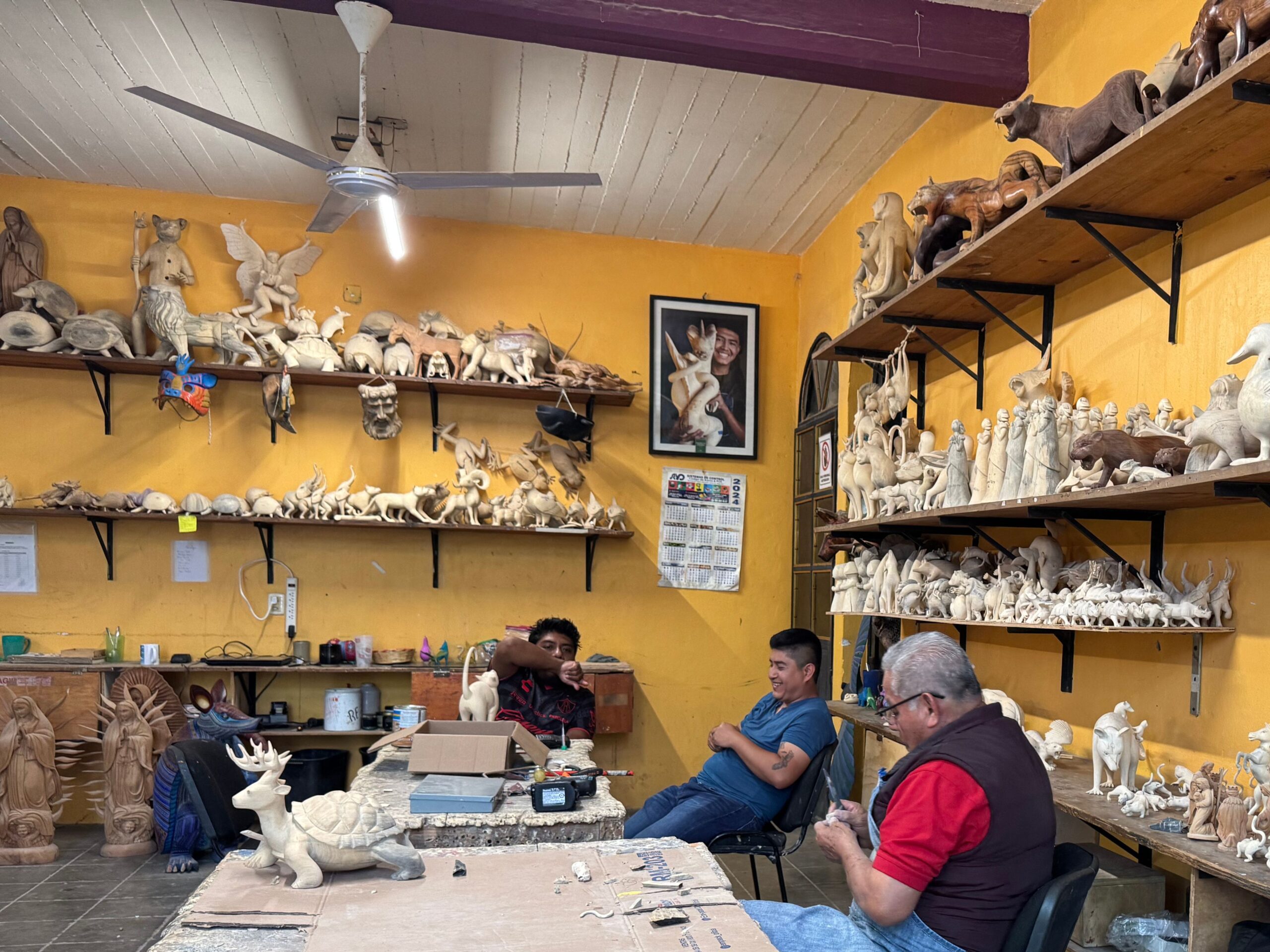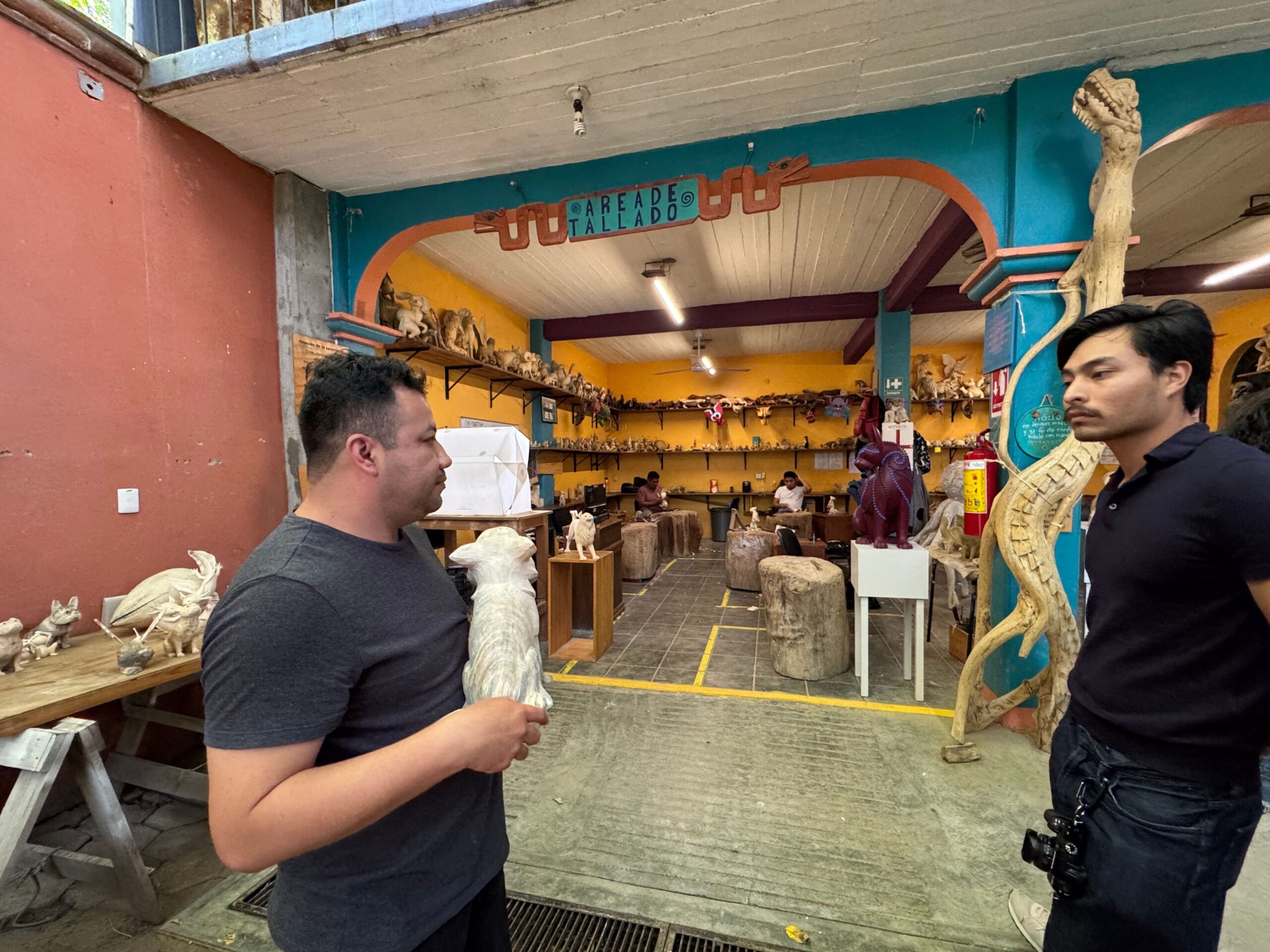 The second stop on our tour is at the Jacobo and María Ángeles Workshop, located in San Martín Tilcajete, Oaxaca. This workshop is internationally renowned for creating alebrijes, hand-carved and painted wooden sculptures that depict fantastic, colorful creatures.
