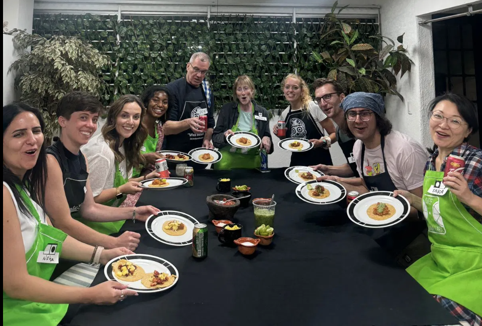 At the end of the class, you’ll sit down and enjoy the meal you’ve prepared, accompanied by traditional Mexican beverages like mezcal or refreshing aguas frescas.